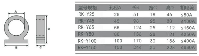 符合ROHS环保指令 优异的性价比 线性度好,灵敏度高,内部消耗小 外形美观大方,体积较小,使用灵活 产品重量轻、全封闭、高绝缘 专用AFD(FPS)电气火灾监控系统的剩余电流探测 型号:RK-Y65 规格:≤250A 频率:50/60Hz 等级:≤0.1%